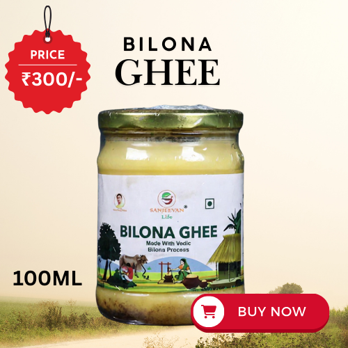 Sanjeevan Life Bilona Cow Ghee is prepared using the traditional Bilona method from curd, not cream. Made from desi cow milk, this ghee is rich in aroma, nutrition, and Ayurvedic value.